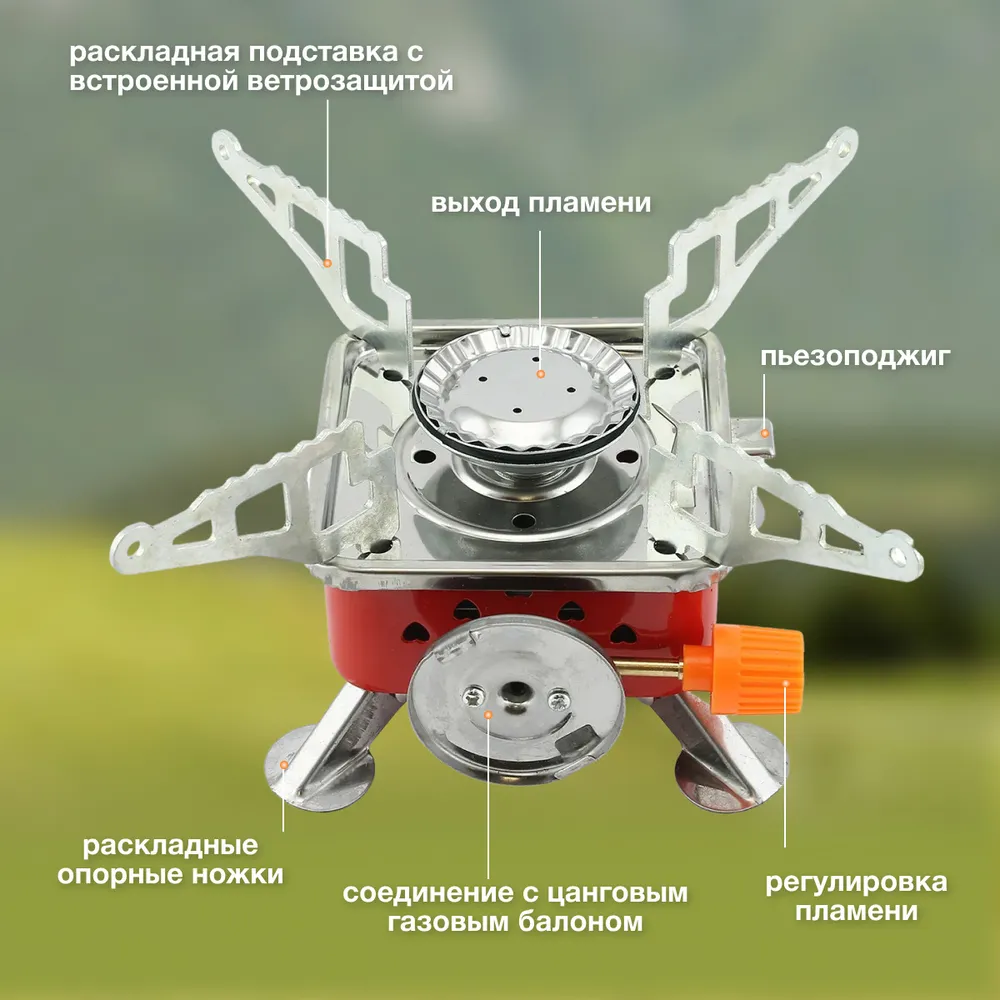 Газовая плитка имеет функцию пъезоподжига, что существенно облегчает задачу пользования в любых условиях. Функционально разработанная конструкция горелки предоставляет надежную защиту от пламени и порывов ветра. Практичная и функциональная газовая плита осуществляет работу на одноразовых газовых баллонах.
